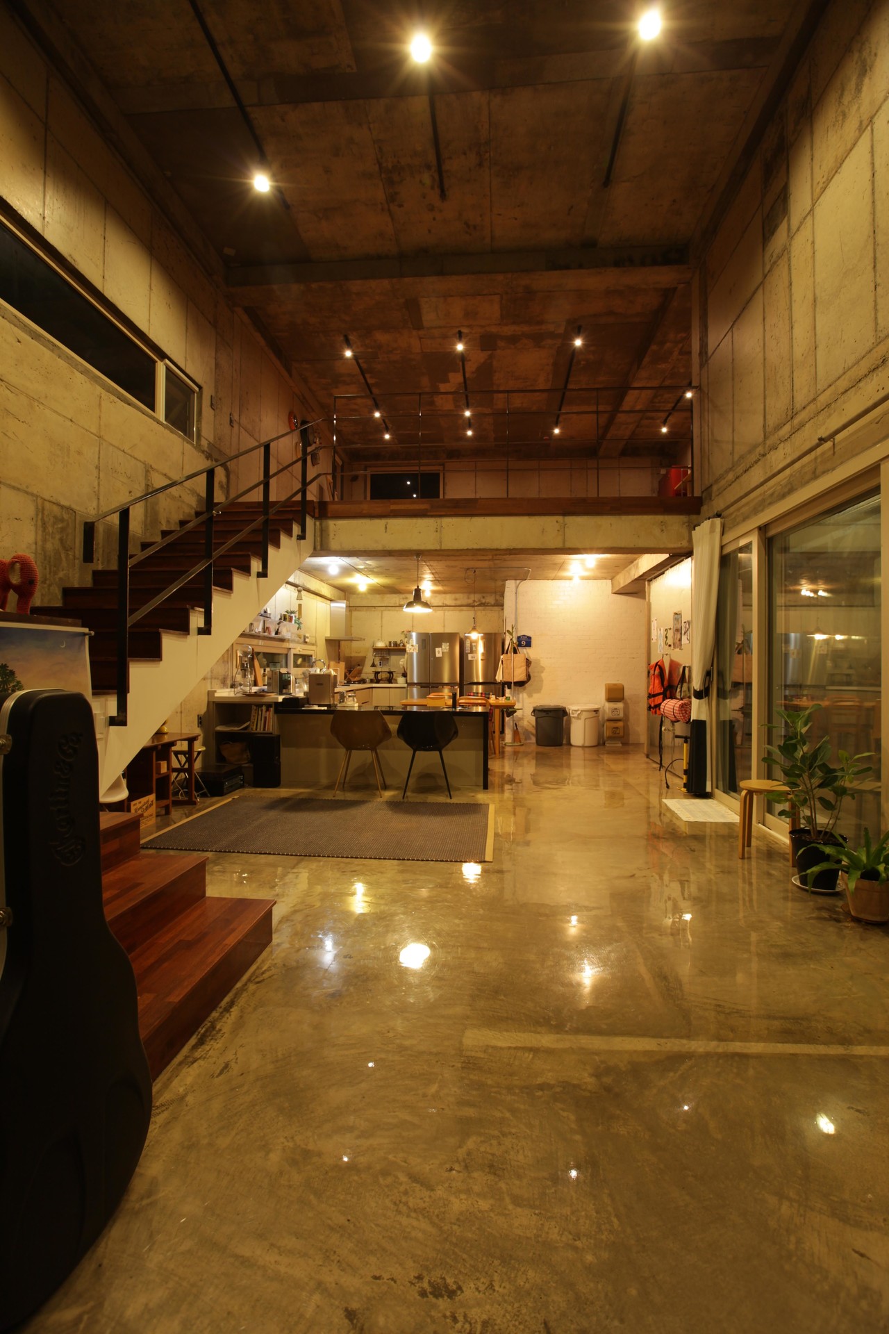 높은 층고의 거실과 Bar 형식의 주방은 언제든 작은 공연장이나 네트워킹의 장으로 변모합니다. 주거 공간에서는 다소 낯선 마감재를 과감히 사용하여 건축주의 개성을 드러냈으며, 한쪽 벽면은 레코드 수납장으로 채워 공간의 정체성을 강조했습니다. 2층 테라스와 3층 옥상에서는 리조트의 야자수와 함덕의 바다가 한눈에 들어와 이국적인 풍경의 정점을 찍습니다.